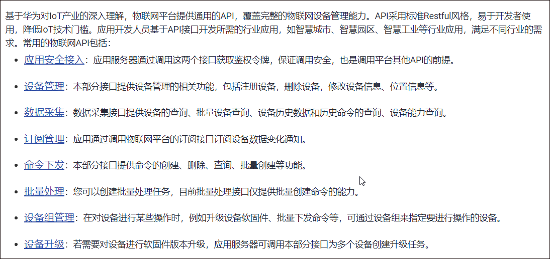 甜文 https://m.shupu.org/应用侧的开发接口一般云平台都会提供不同平台的SDK,如阿里云开源提供Java SDK/C# SDK等;而华为则提供了Java、PHP等SDK,没有包含.net 的SDK。华为物联网云的应用侧API接口包括: